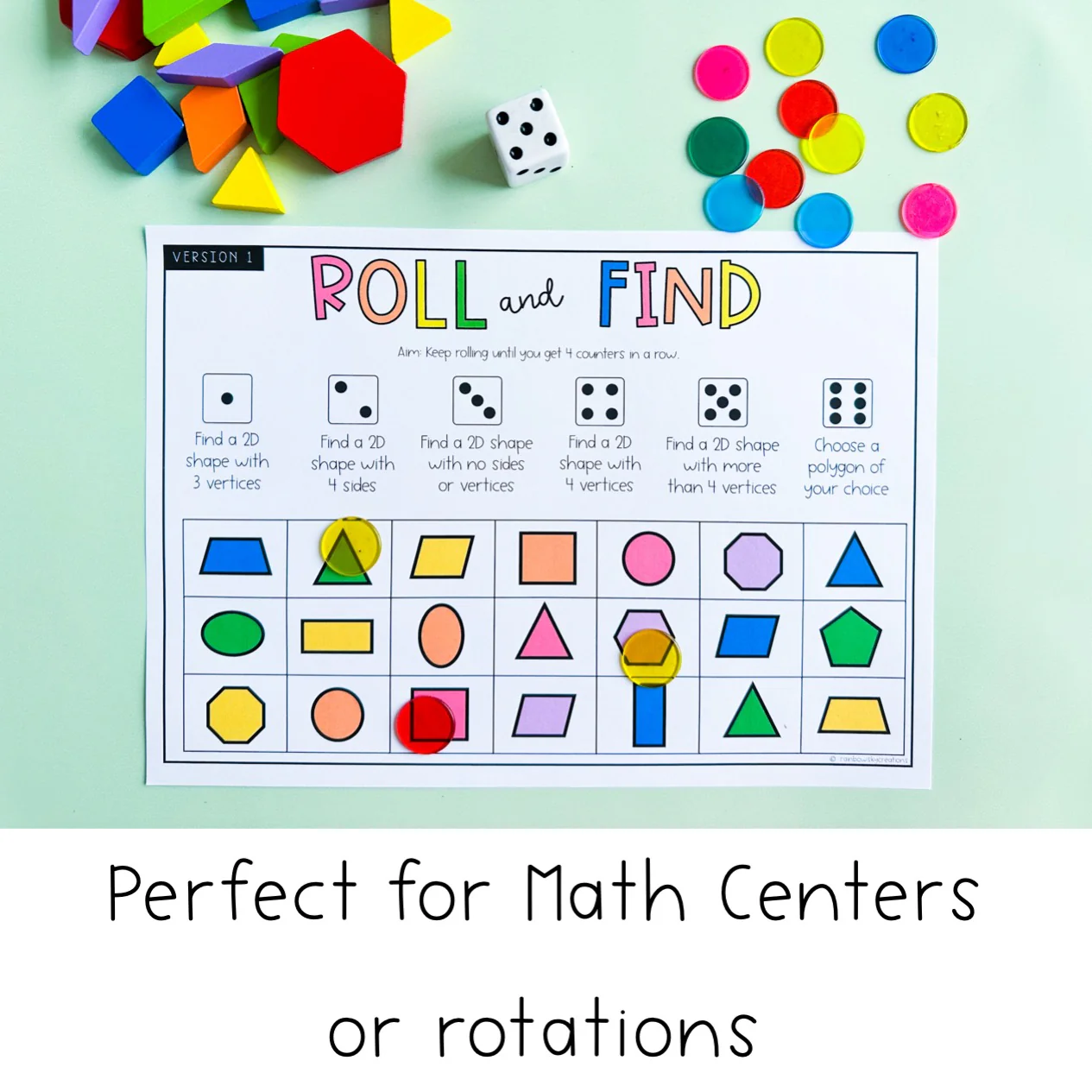 - Roll and Find: Exploring the properties of 2D shapes (3 versions)