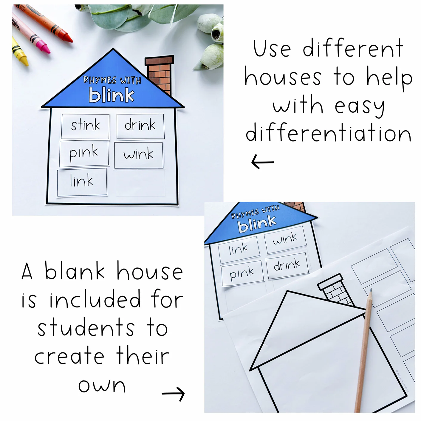 12 rhyming word houses are included to help your students understand how and why words rhyme. Use for small groups (such as a reading group activity), fast finishers or as a cut and paste lesson.