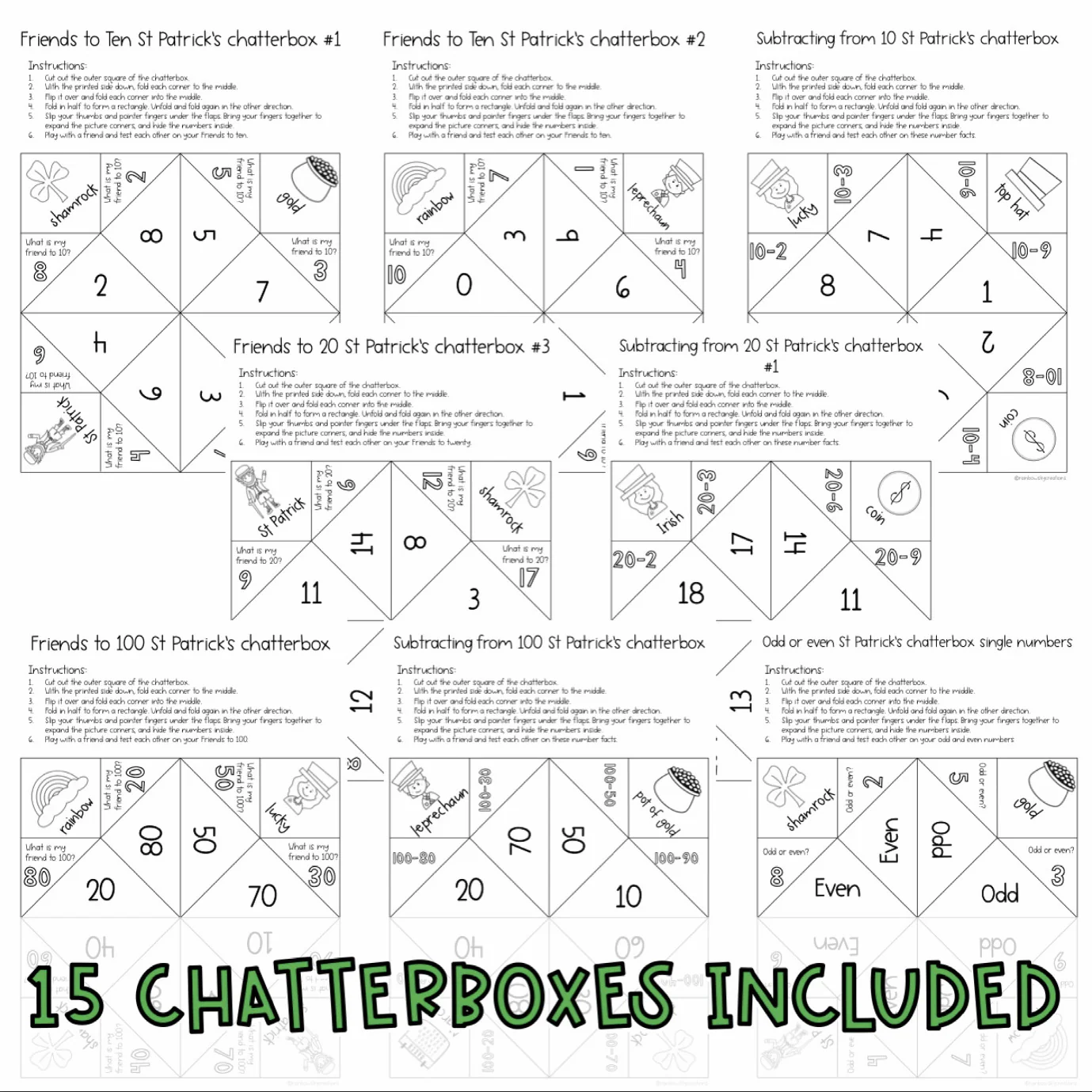 St Patrick's Day Math Chatterboxes -Grades 1-2