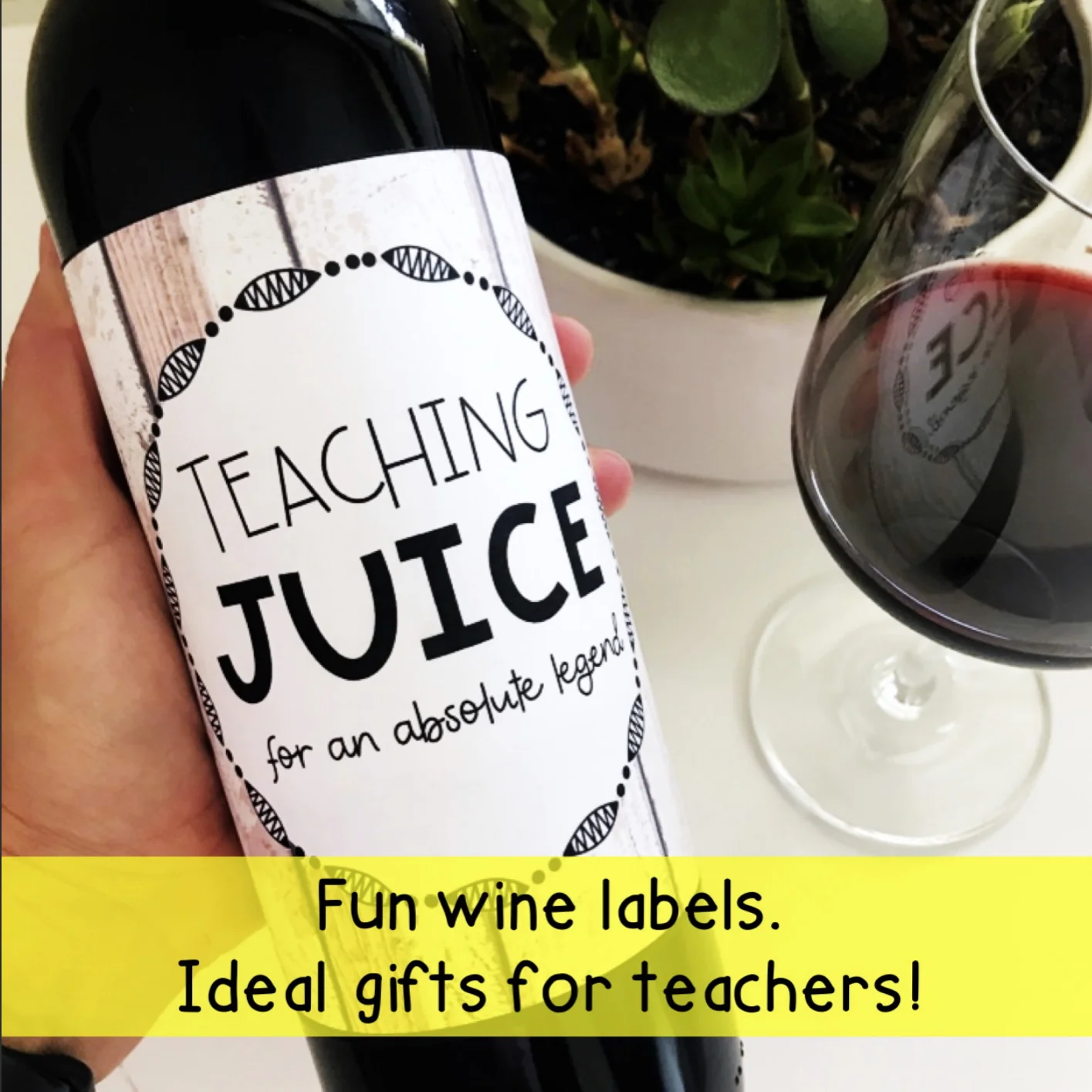 These fun wine labels are the ideal way to make a teacher feel special. Use to thank a teacher at Christmas or any other time of the year!