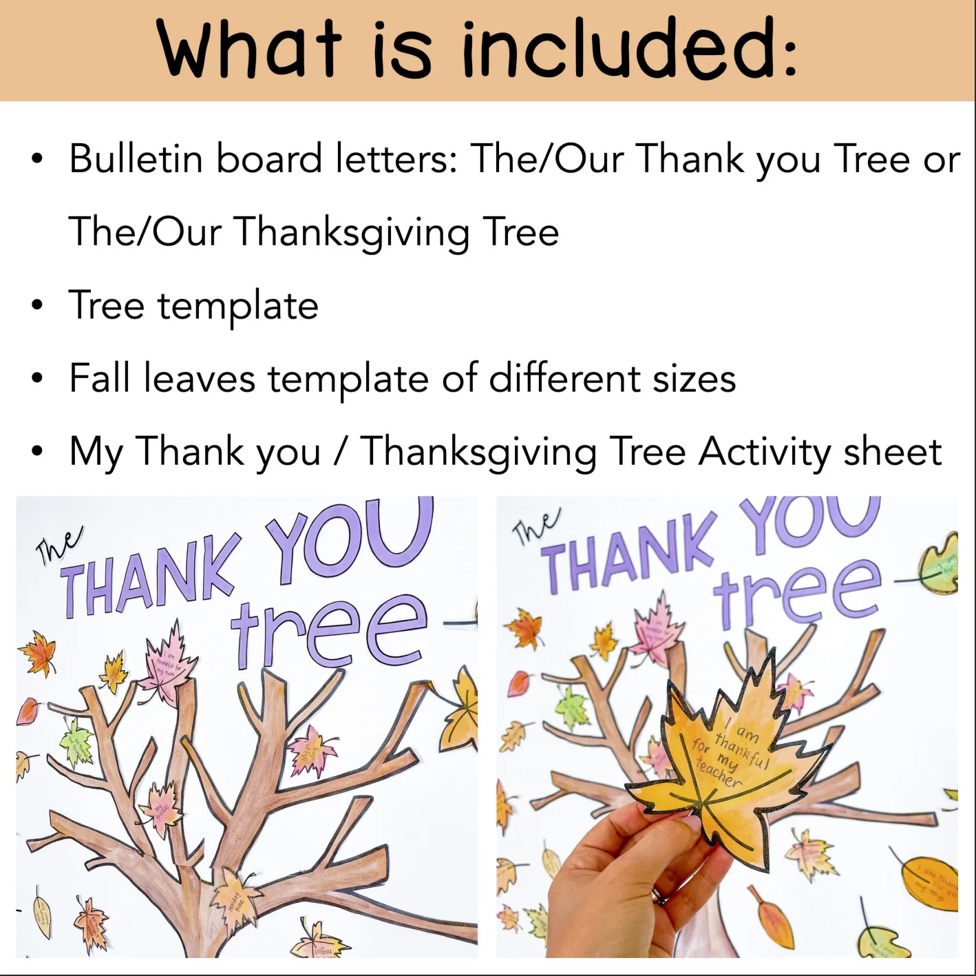 • Bulletin board letters: The/Our Thank you Tree or The/Our Thanksgiving Tree